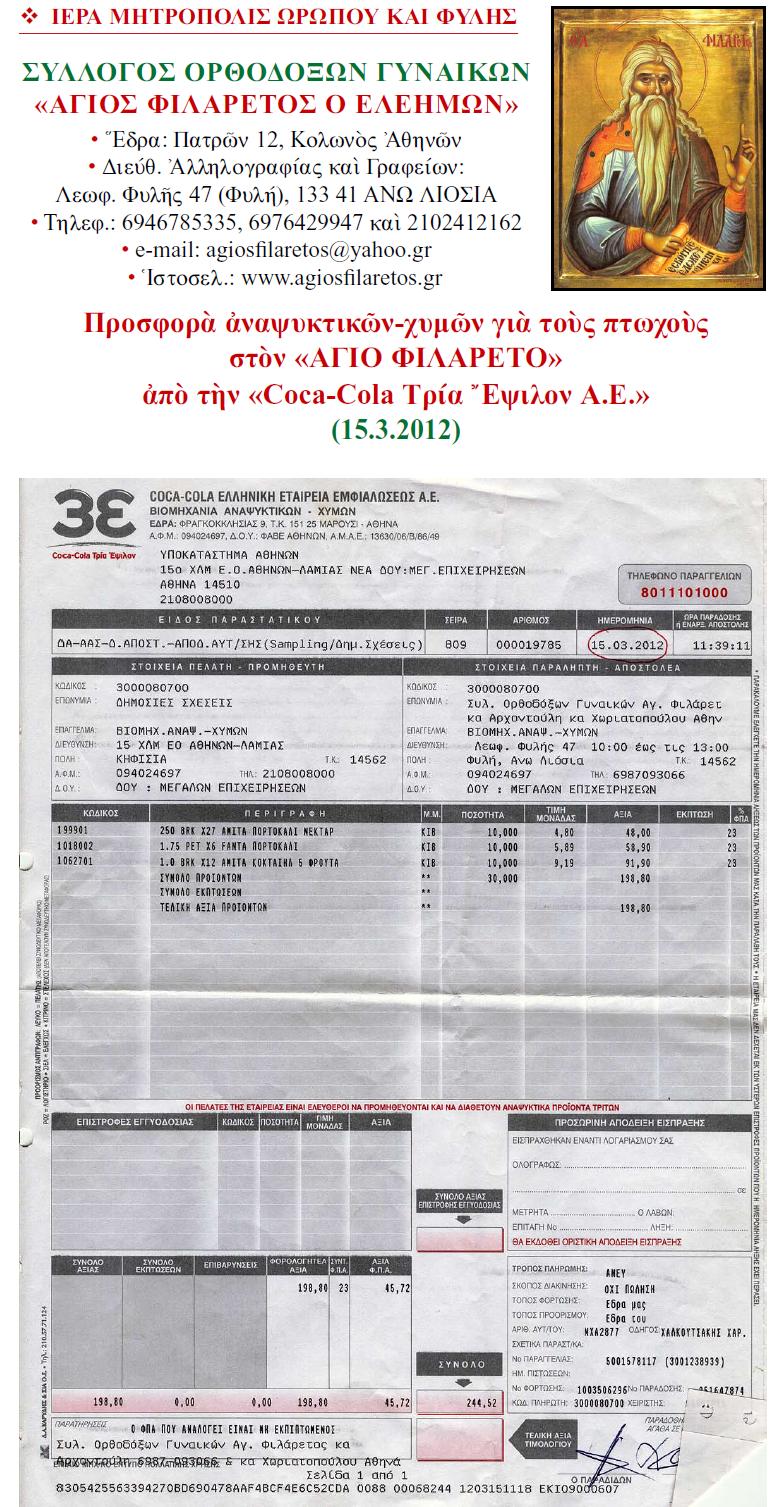 Αποδείξεις δωρεών από COCA-COLA ΤΡΙΑ ΕΨΙΛΟΝ 15.3.2012