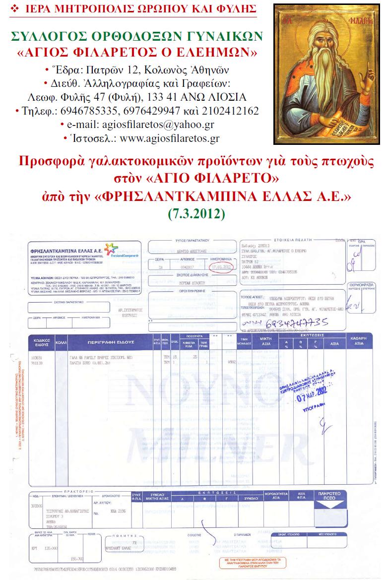 Αποδείξεις δωρεών από ΦΡΗΣΛΑΝΤΚΑΜΠΙΝΑ ΕΛΛΑΣ Α.Ε 7.3.2012