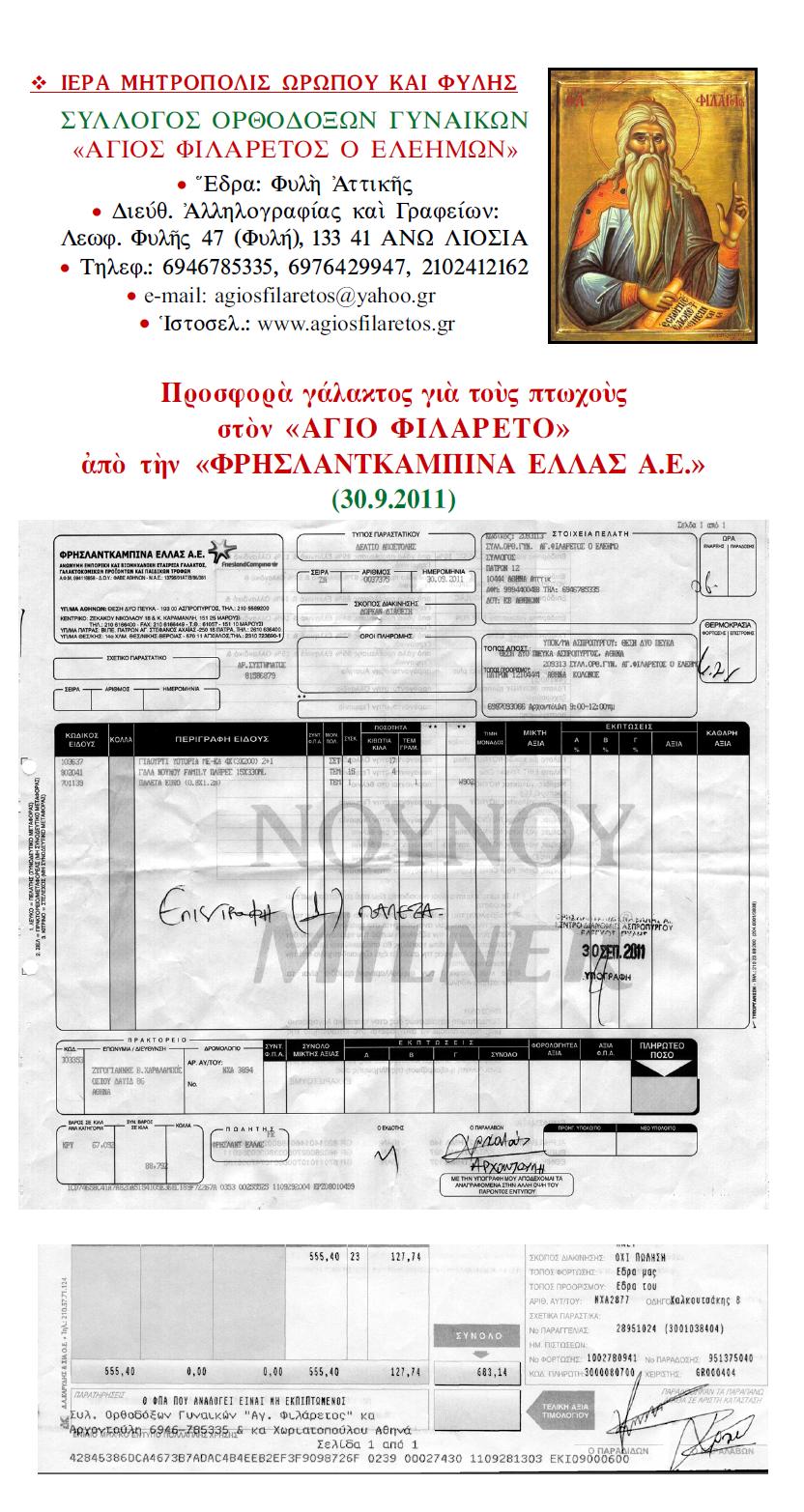 Αποδείξεις δωρεών από ΦΡΗΣΛΑΝΤΚΑΜΠΙΝΑ 30.9.2011