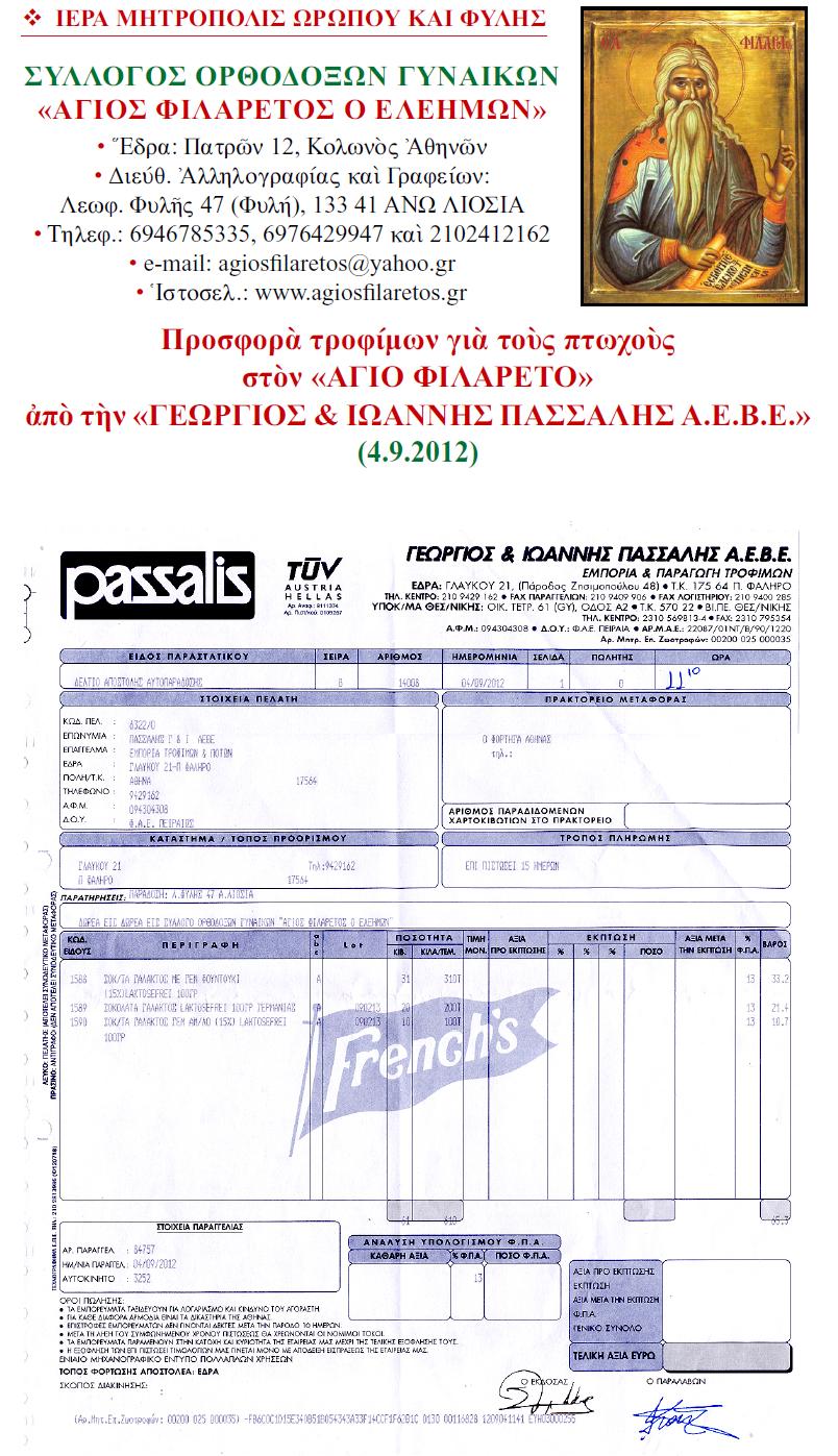 Αποδείξεις δωρεών από ΓΕΩΡΓΙΟΣ & ΙΩΑΝΝΗΣ ΠΑΣΣΑΛΗΣ 04.09.2012