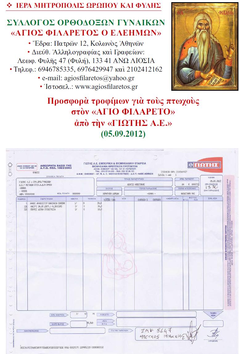 Αποδείξεις δωρεών από την ΓΙΩΤΗΣ Α.Ε. 05.09.2012