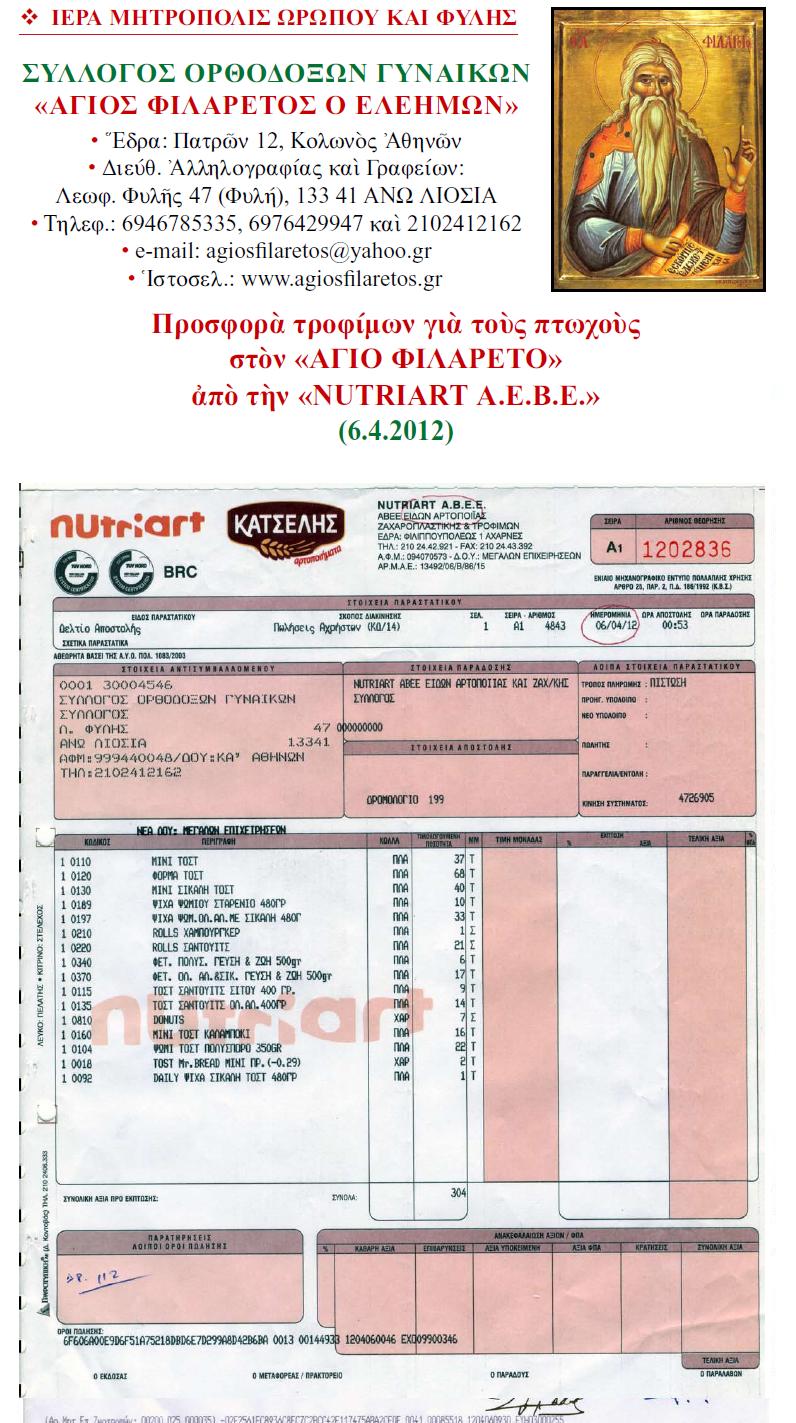 Αποδείξεις δωρεών από NUTRIART 6.4.2012