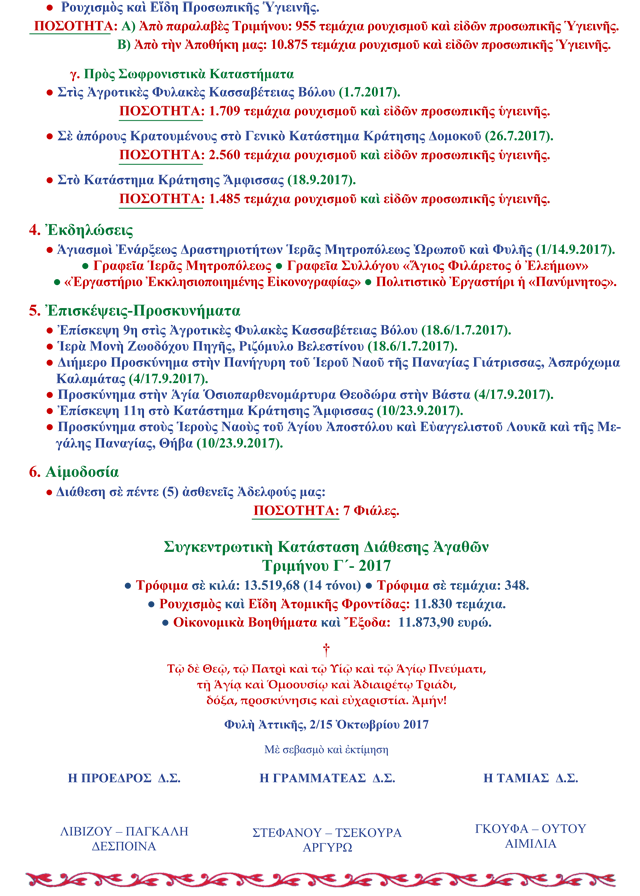Έκθεση πεπραγμένων, Τρίμηνον Γ΄ Ιούλιος – Σεμπτέμβριος 2017