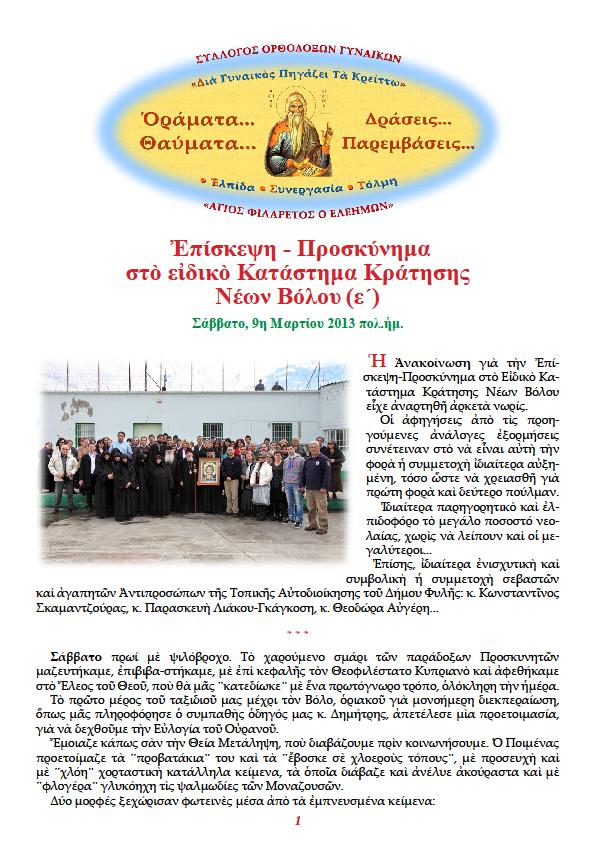 Προσκύνηµα-Ἐπίσκεψις στὶς Ἀγροτικὲς Φυλακὲς Κασσαβέτειας Μαγνησίας 16.3.2025