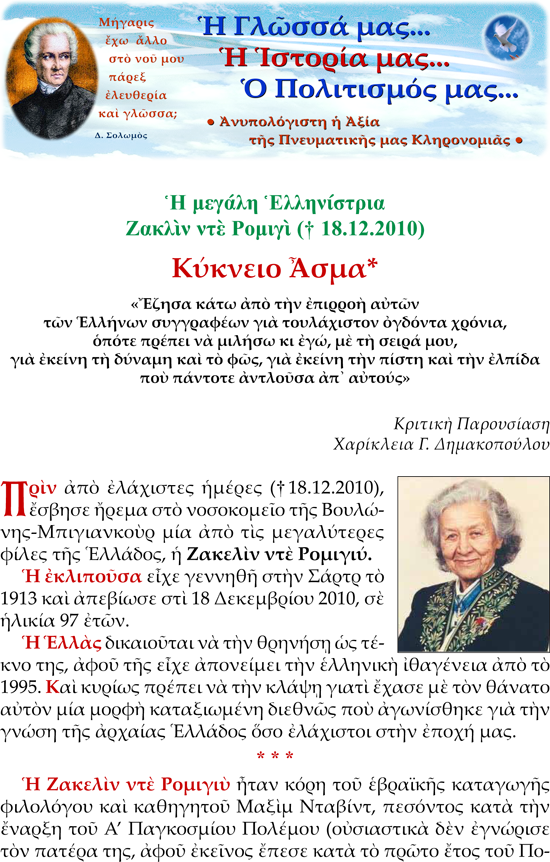 Κύκνειο Άσμα (Η μεγάλη Ελληνίστρια Ζακλίν ντε Ρομιγί)