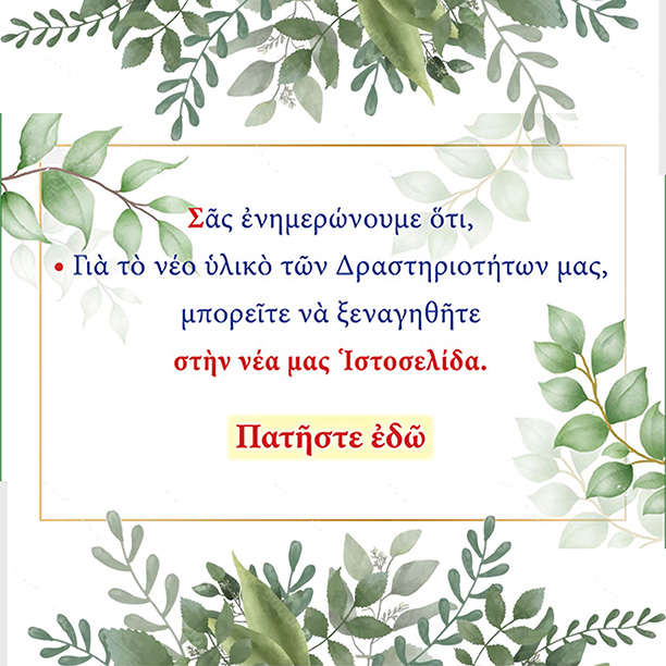 Η ΝΕΑ ΜΑΣ ΙΣΤΟΣΕΛΙΔΑ