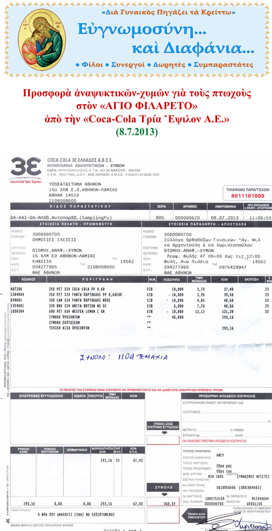 Προσφορά αναψυκτικών-χυμών από “Coca-Cola Τρία Έψιλον Α.Ε.” 8.7.2013