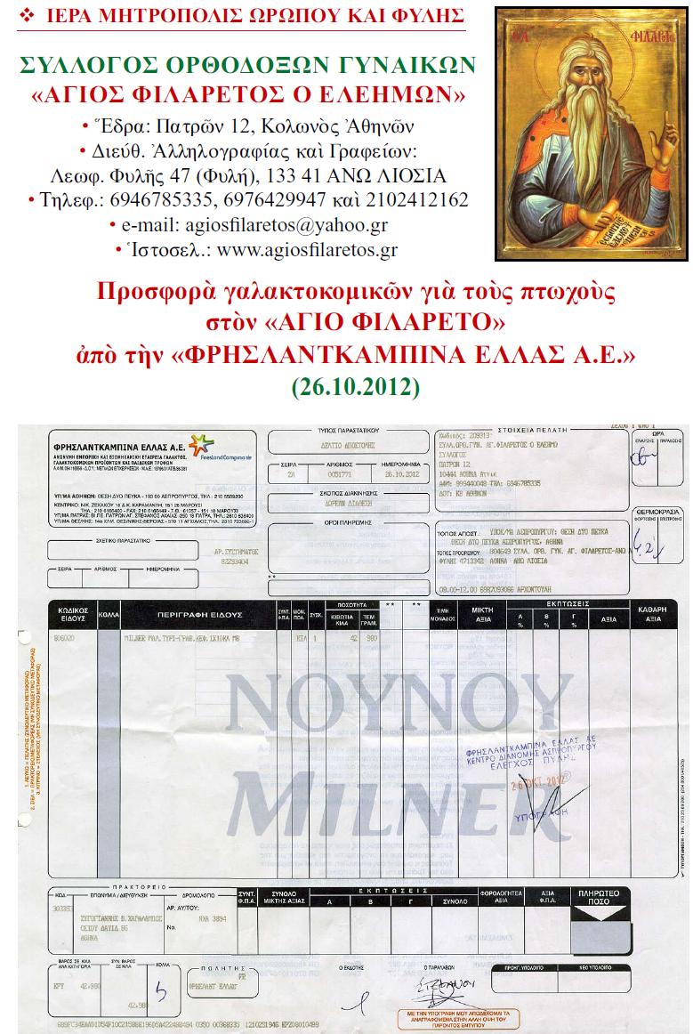 Αποδείξεις δωρεών από ΦΡΗΣΛΑΝΤΚΑΜΠΙΝΑ 26.10.2012