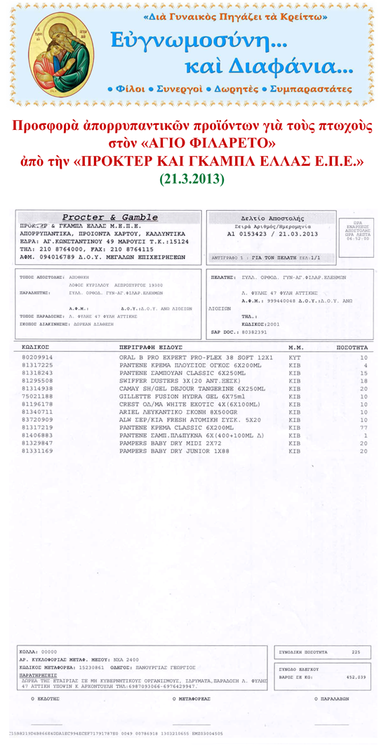 Προσφορά απορρυπαντικών από την Procter & Gamble ΕΛΛΑΣ Ε.Π.Ε. 21.3.2013